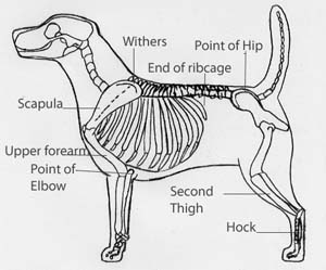 of chest extend past the elbow at this age. Step Five: Evaluate the length of back. Measure the distance from withers to front base