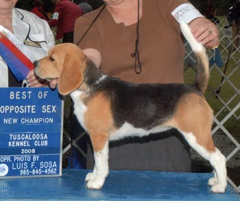 CH AlaDars Just Bewitch'N- Sire:Ch AlaDars Something Wild -Dam: Ch Perky's Takin' A Break. "Samantha" is a 13 inch, is a littermate to CH Aladars Just Idoliz'N, CH Aladars Just Command'N,and CH Aladars Just Enchant'N. Samantha is owned by Janet Doesschate and Aladar beagles. She was owner handled to her championship. She was shown to a second in the Open class by Janet at the Beagle Nationals 2007 and then came to AlaDar to be finished. (2006-2020)